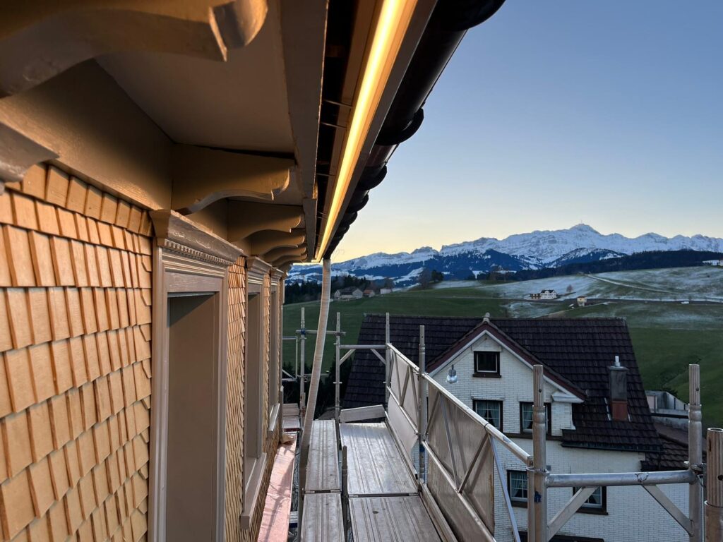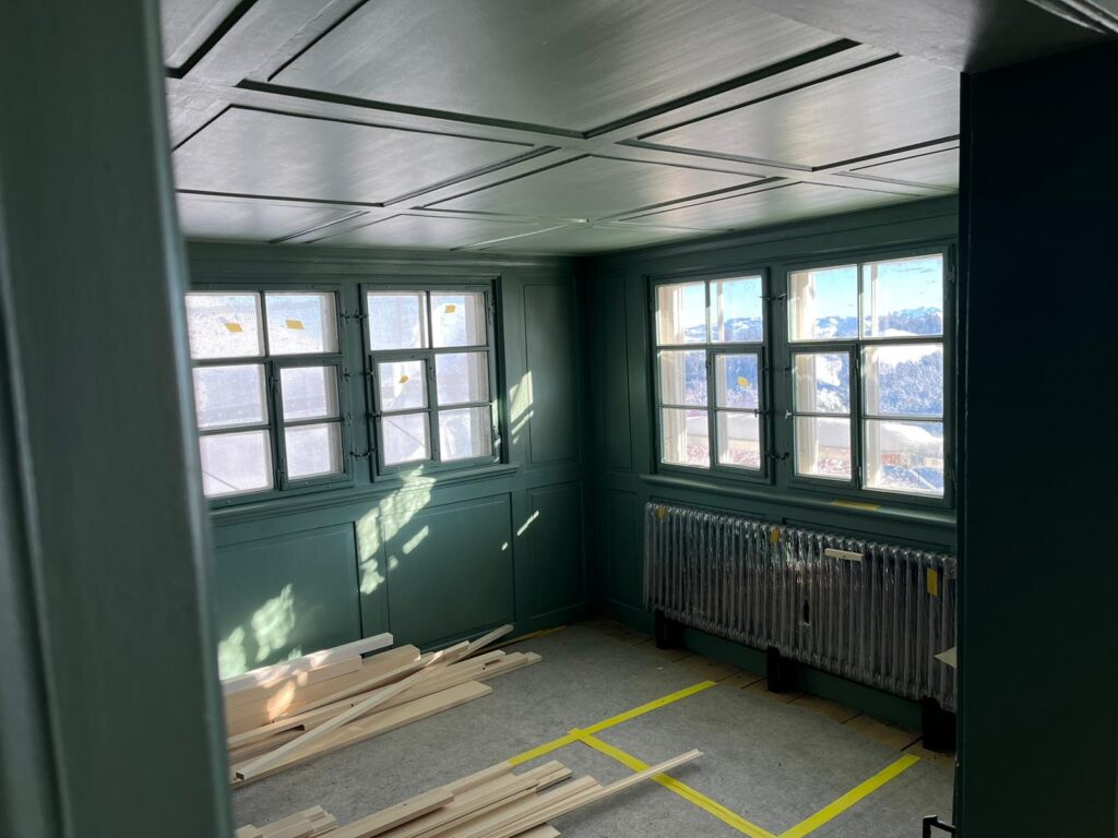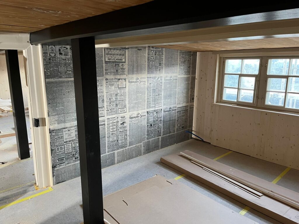 UMBAU GEHT WEITERHIN FLOTT VORAN…. Mi., Jan., 2024 Nicht nur ausserhalb – wo der Schindelschirm kurz vor der Vollendung steht – sondern auch innerhalb des Fabrikantenhauses gehen die Arbeiten flott voran. #Ältere Einträge Nächster Eintrag$