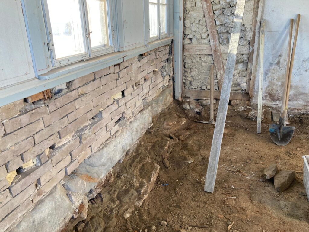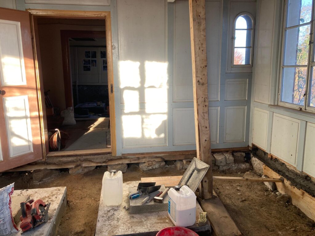 Die Vorarbeiten sind abgeschlossen. Das Fabrikantenhaus ist ausgehöhlt und bereit für die Sanierung.